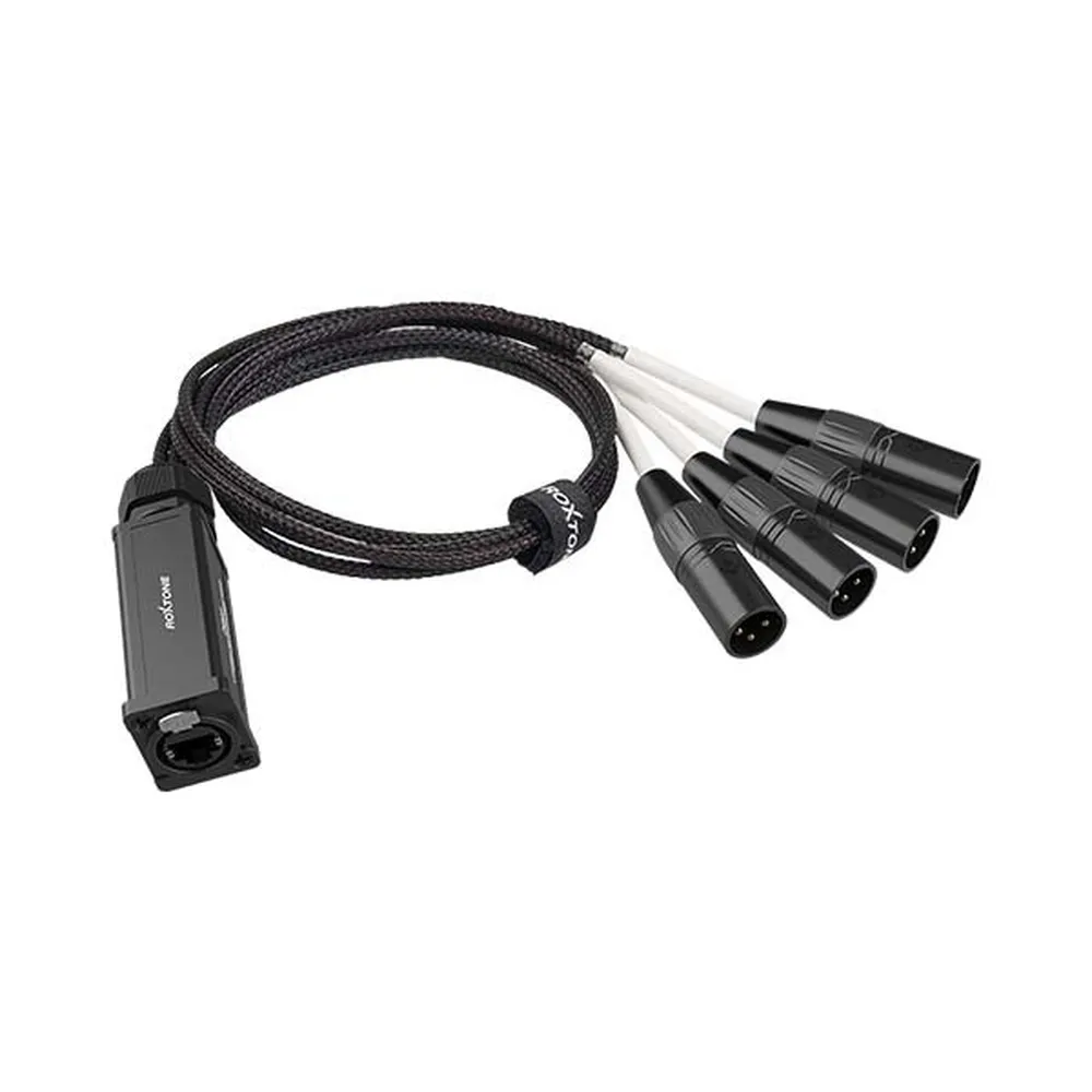 Roxtone PS4F - кабельный разветвитель для компактных пассивных распределительных коробок PS4FD, PS4MD. 4 кабеля (110 Ом) с числовыми кодами для упрощения определение различных каналов, прочная нейлоновая оплетка, 3-контактные XLR разъемы.Поддерживает фантомное питание 48 В, может передавать сигнал напрямую на аналоговую или цифровую консоль