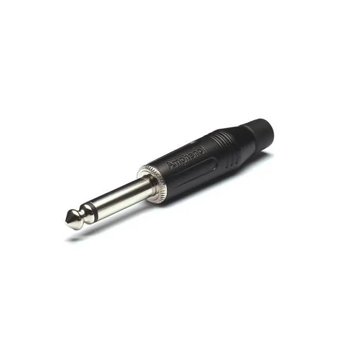 Amphenol ACPM-GB — это двухконтактный моно джек стандартного диаметра (6.35 мм) с металлическим корпусом. Популярный коннектор для звукопроводящих кабелей, подходит для дома и профессиональной деятельности. Классический чёрный цвет, прямой штырь. На корпусе — название производителя.