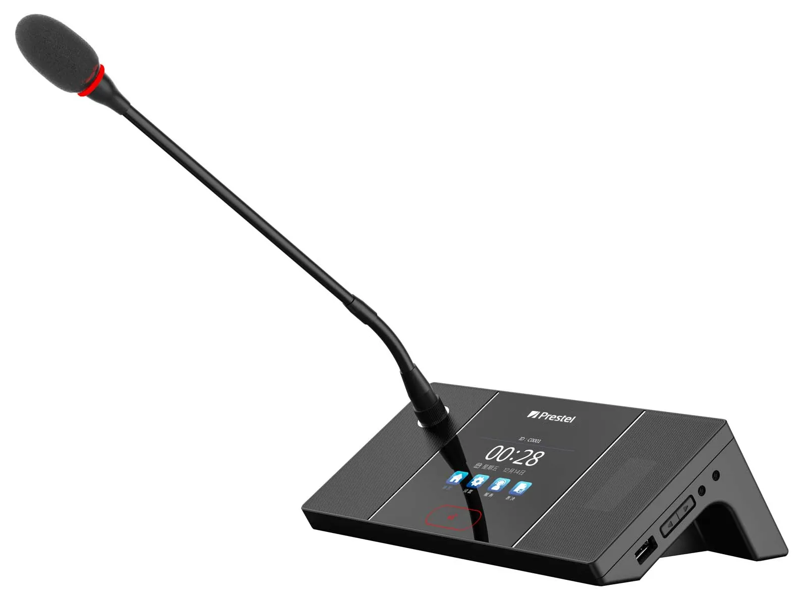 Описание пульта делегатаPrestel DCS-NPU1D — проводной настольный пульт делегата с сенсорными дисплеями: основным 3,5" и дополнительным 8,8" с углом обзора 178°. Поддерживает регистрацию участников и голосование, имеет 8 режимов конференции.