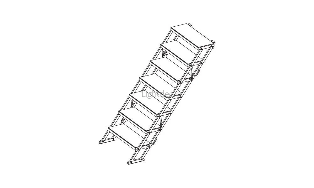 - Лестница имеет противоскользящую сетчатую поверхность, ручки для переноски, фиксатор для дополнительной жесткости.
