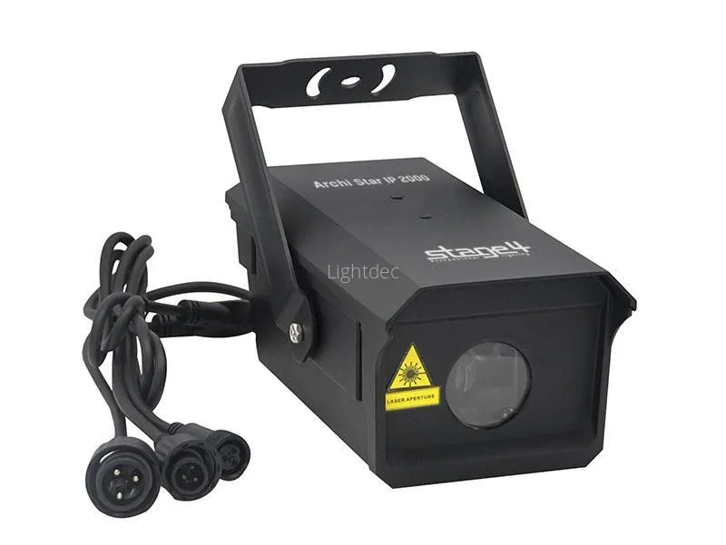 ArchiStar IP 2000 - это полноцветный анимационный лазерный проектор эффекта «звездное небо» во влаго- и пылезащищенном корпусе со степенью защиты оболочки IP65. Прибор предназначен для создания декоративной ландшафтной и архитектурной подсветки. Благодаря полностью диодным лазерным модулям допустимо использования лазерного проектора при отрицательных температурах окружающей среды. Предусмотрена возможность настенного крепления или установка с помощью монтажной лиры.