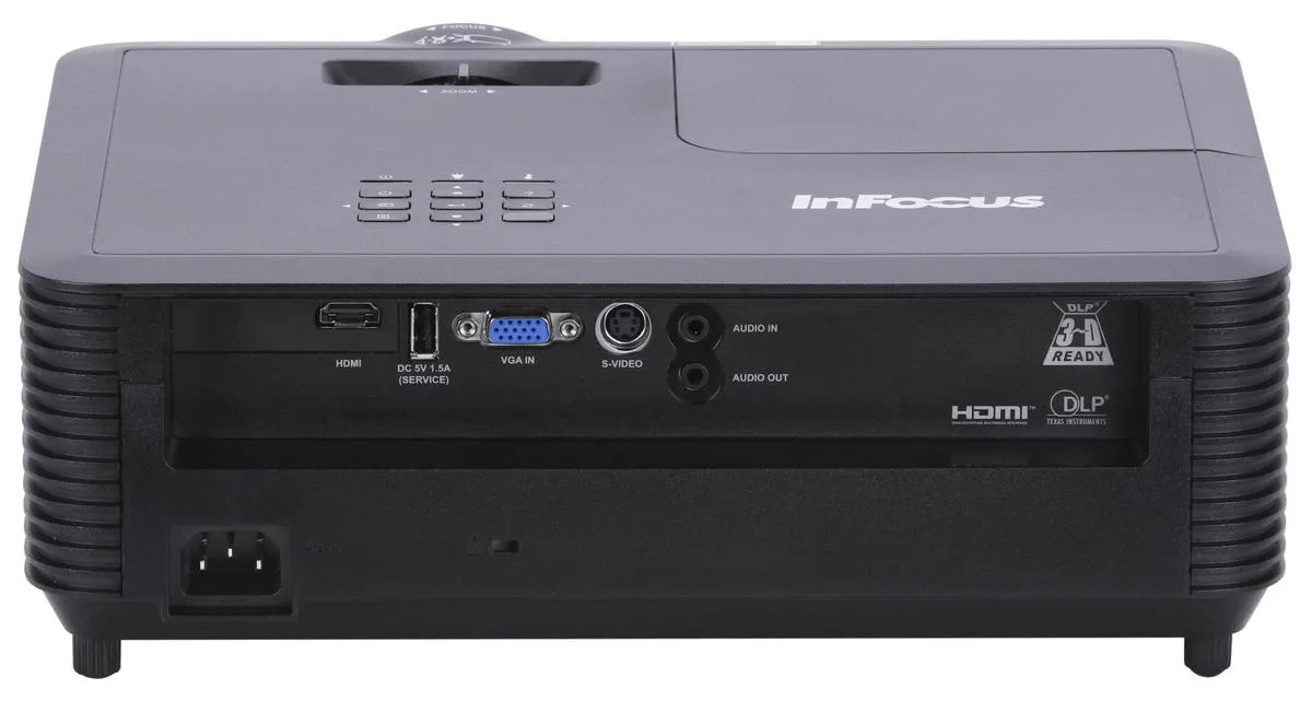 INFOCUS IN118AA – среднефокусный DLP проектор с разрешением FullHD (1920x1080) и яркостью 3400 лм. В модели есть все необходимое: HDMI, VGA, USB-A (пит.) и динамик 3W. Поддерживает 3D режим и wi-fi (адаптер поставляется отдельно).