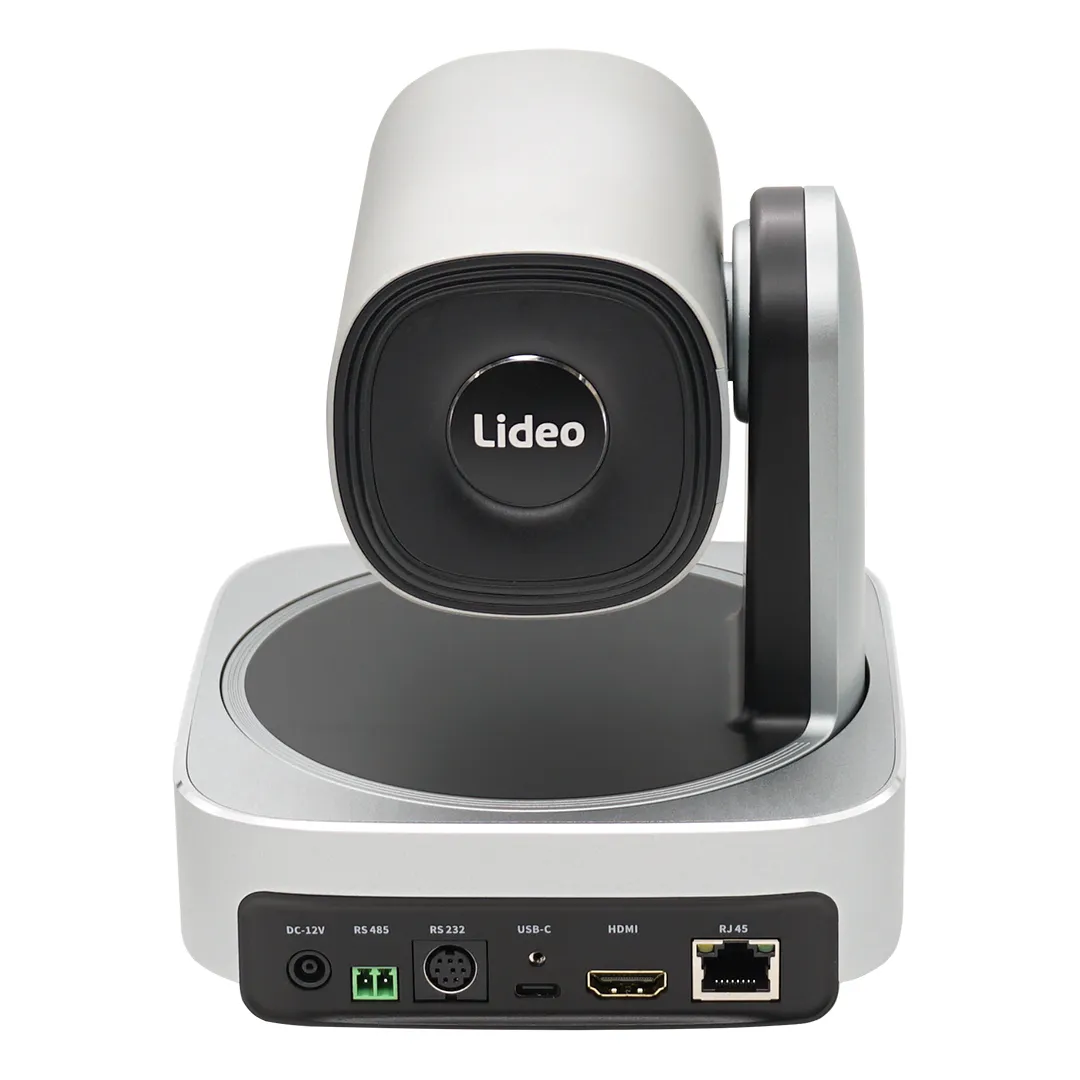 Lideo PTZ-HD5N — серебристая PTZ-камера для видеоконференций. Оснащена 5-кратным оптическим зумом и поддерживает USB, HDMI, RJ45 и NDI. Разрешение видео — 1080p60. Современный дизайн.