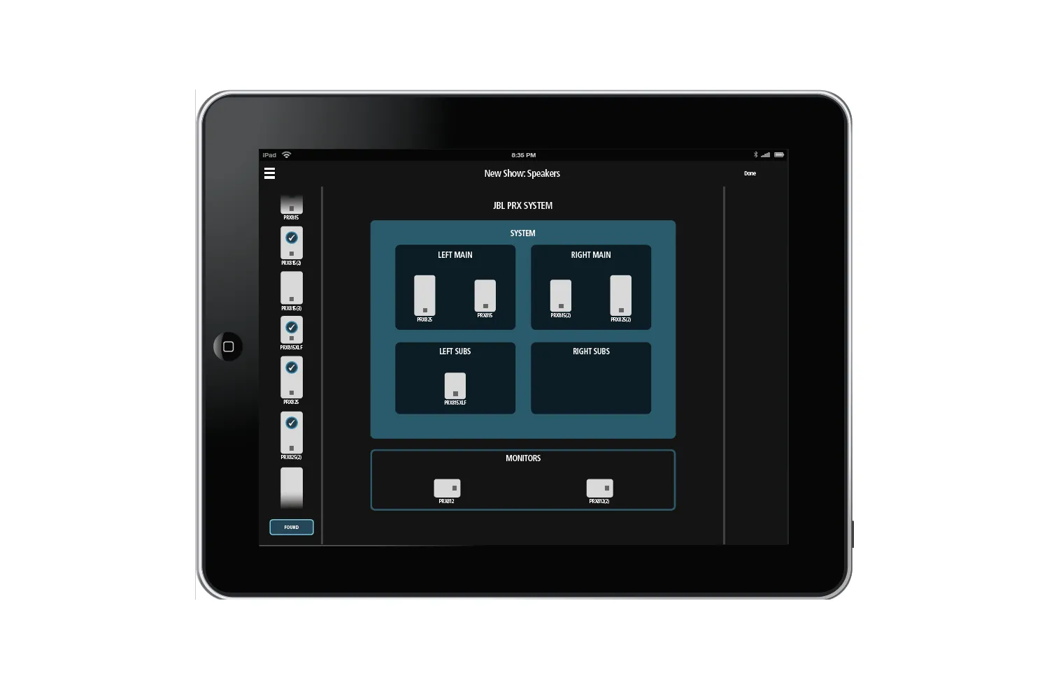 JBL PRX825W — активная акустическая система с двумя 15-дюймовыми и одним 1.5-дюймовым динамиками. Мощность — 1500 Вт. Оснащена Wi-Fi для удалённого управления через приложение на iOS/Android. В системе используются неодимовые драйверы JBL, что увеличивает звуковое давление и расширяет диапазон частот. DSP-процессор позволяет настраивать эквалайзер и уровень входного сигнала. На задней панели есть XLR/TRS разъёмы, XLR-MIX OUT и RCA.