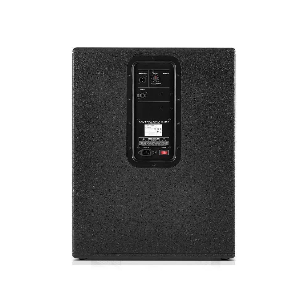 Sub 118, как и Sub 115, является сабвуфером прямого излучения с фазоинвертором HSLV. В сабвуфере применен мощный НЧ громкоговоритель DYNACORD LFS 18700 (700 Вт RMS и 2800 Вт пиковой мощности), который обеспечивает мощную передачу низких частот от 30 Гц при максимальном уровне звукового давления 132 дБ. Корпусы обоих сабвуферов выполнены из березовой фанеры с износостойким двухкомпонентным покрытием. На верхней стороне корпуса имеется гайка М 20 для установки акустической штанги для сателлитов. Простота транспортировки сабвуферов обеспечена удобными транспортировочными ручками и роликами.