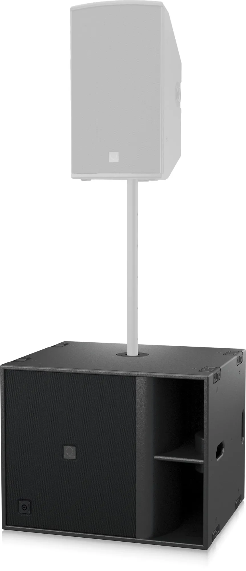 - Одиночный 15-дюймовый сабвуфер с кардиоидной антенной и фазоинвертором для туровых и инсталляционных приложений