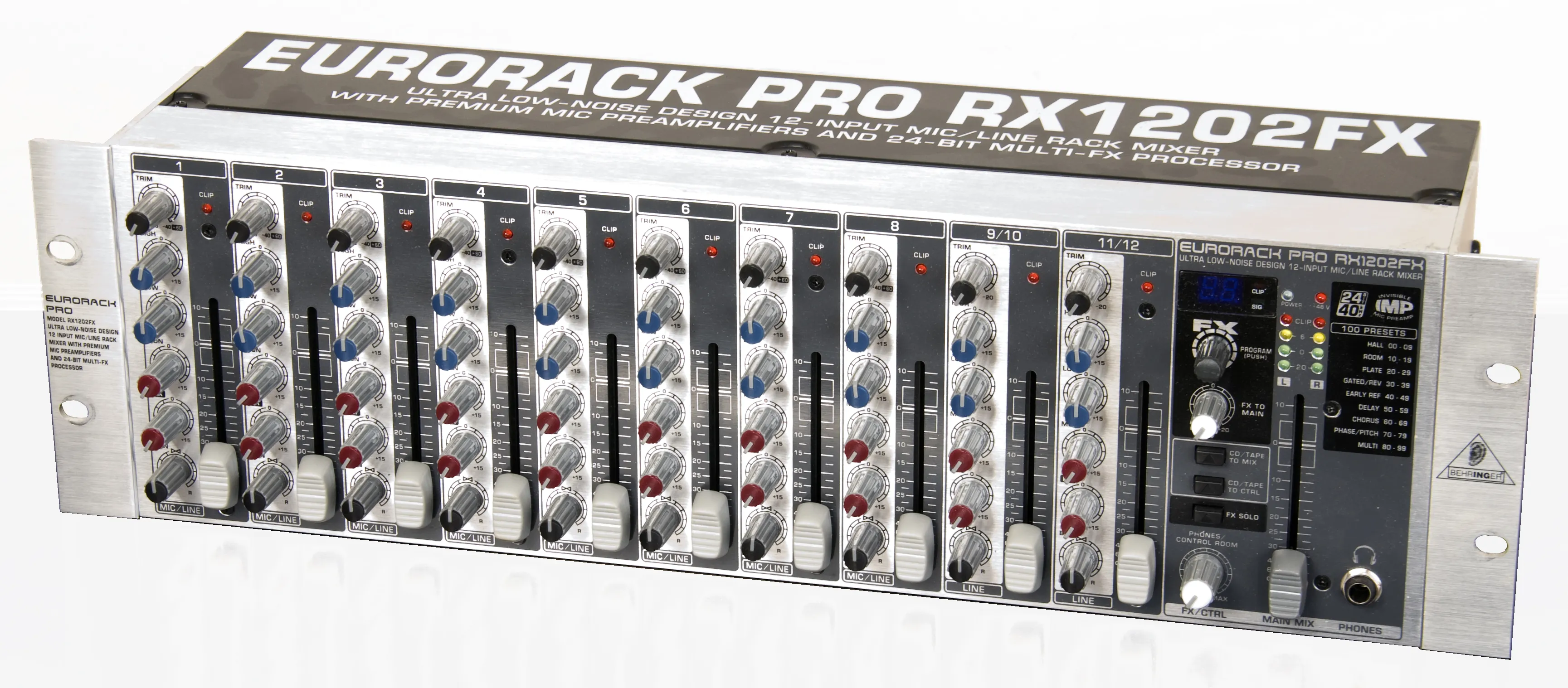 Сверхнизкошумящий 12-канальный рэковый микшер с высококачественными микрофонными предусилителями и 24-битным мультиэффектпроцессором.Особенности: