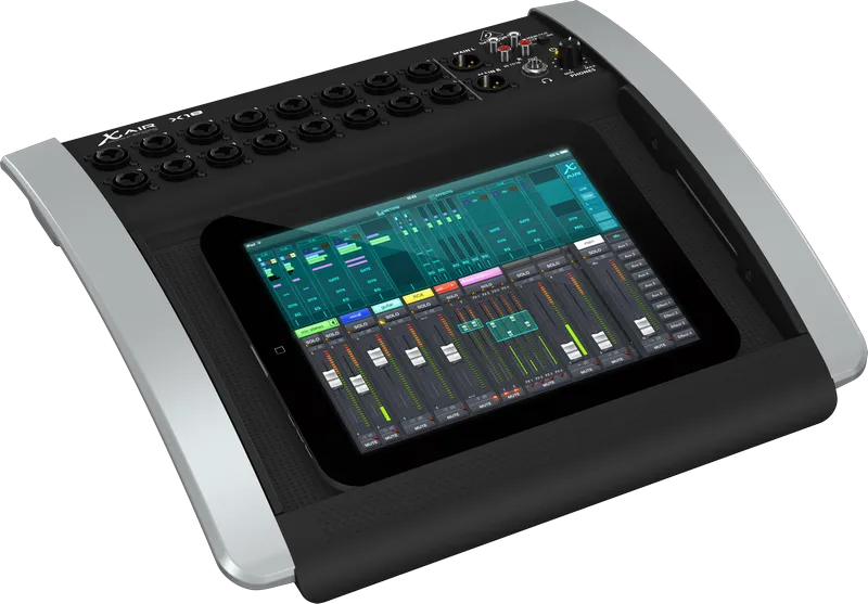 BEHRINGER X18 - 18-канальный, 12-bus цифровой микшерный пульт для для iPad и других планшетов, который отлично подойдет для живых концертов и работы в студии, благодаря наличию 16 отмеченных наградой полностью программируемых микрофонных предусилителей MIDAS, удобному интегрированному модулю Wi-Fi для беспроводного контроля и USB-интерфейсу, работающему со скоростью молнии.