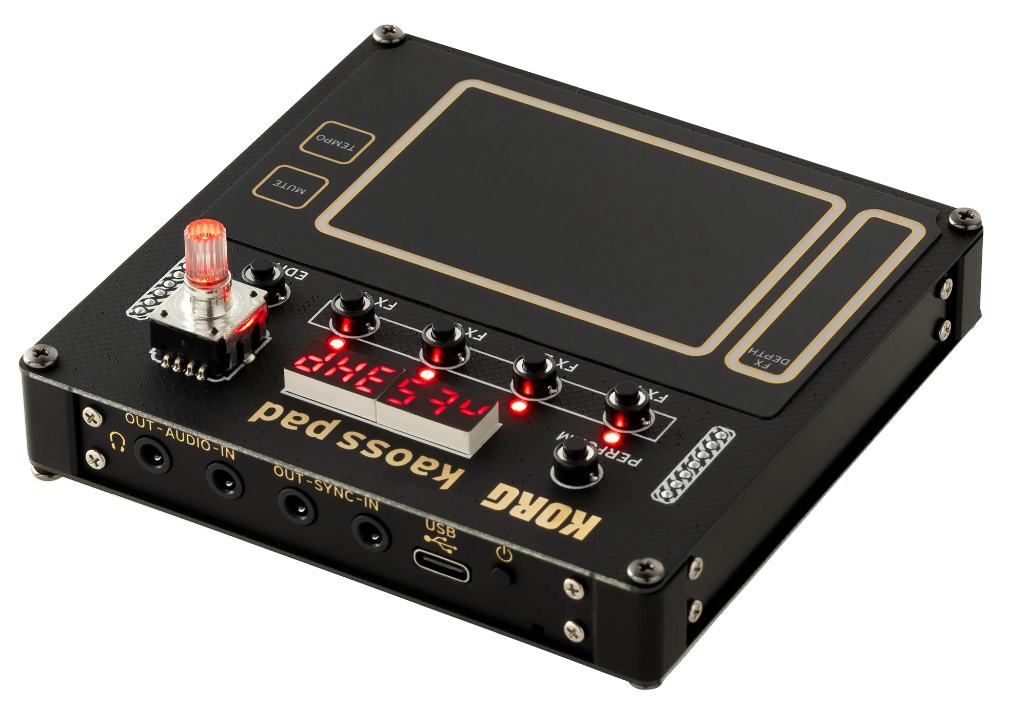 Прибор оснащен наиболее известными функциями других KAOSS-пэдов, такими как глубина эффектов или Tap BPM, а также функцией фиксации для одновременного управления несколькими эффектами по отдельности.