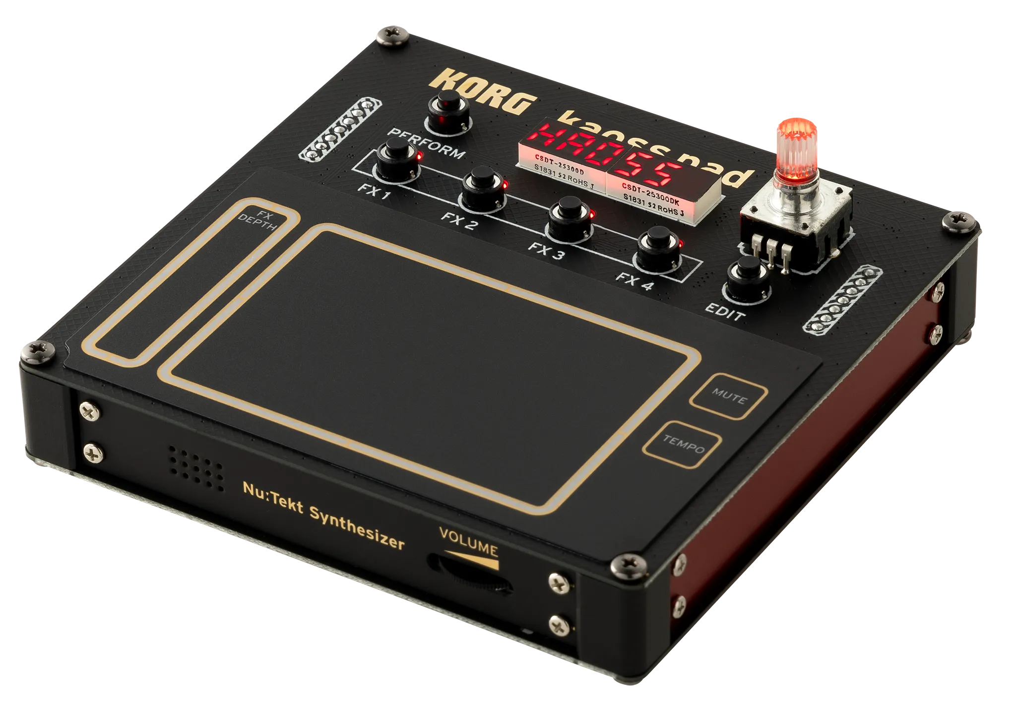 NTS-3 оснащен классическим пэдом KAOSS X/Y, слайдером глубины эффектов и различными ручками. Процессор предоставляет возможность одновременно использовать до четырех эффектов с глубоким редактированием.
