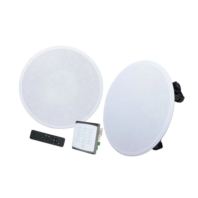 Музыкальный проигрывательМузыкальный проигрыватель включает в себя активную панель управления со встроенным стереоусилителем 2х25 Вт, MP3-плеер с поддержкой USB и SD-карт до 32 Гб, а также Bluetooth и AUX-порты. В комплекте две потолочные колонки мощностью 15 Вт с частотным диапазоном 100–20 000 Гц. Цвет устройства — белый.