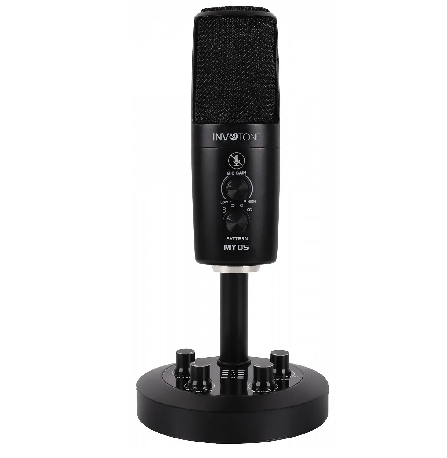 Invotone MYOS — настольный микрофон с USB-интерфейсом. Имеет 3 капсюля, переключаемую направленность (кардиоида, всенаправленный, восьмёрка, стерео). Частотный диапазон: 20 Гц–20 кГц. Чувствительность: –38 дБ ± 3 дБ. Динамический диапазон: 96 дБ. Семплирование: 24 бит/96 кГц.
