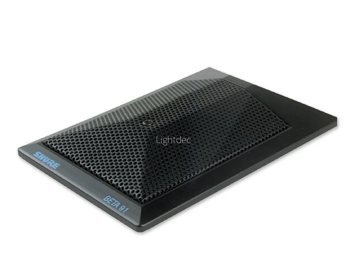 Одна из специализированных моделей конденсаторных микрофонов, выполненных компанией «Shure». Создан специально для работы с бас-барабанами, ударными, перкуссией или другого источника звука, обладающего высоким уровнем звукового давления (SPL) на низких частотах. Благодаря обновленной версии микрофонного капсюля, мембраны, низкопрофильному дизайну, интегрированного предусилителя и XLR-разъема, Beta91A позволяет получить профессиональный студийный звук. Полукардиоидная диаграмма позволяет избежать попадания в сигнал посторонних шумов. Двухпозиционный переключатель позволяет понижать чувствительность на средних и низких частотах. Микрофон прост в использовании, и не требует внешнего монтажа. Микрофон работает от фантомного питания.Спецификации: электретный конденсаторный микрофон полукардиоидной направленности. Частотный диапазон: 20 Гц – 20 кГц. Максимальный SPL: 1000 Ом – 151дБ, 2500 Ом - 155дБ. Разъем: трехконтактный XLR. Вес: 470 г.