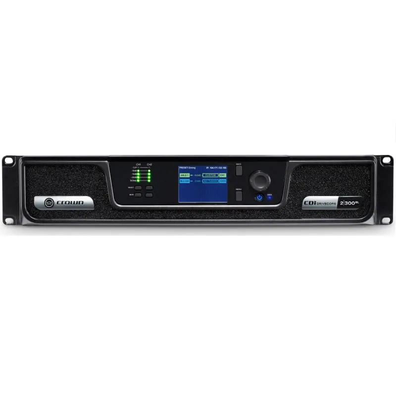 Crown CDi DriveCore 2|300BL — двухканальный усилитель для инсталляций. Мощность 300 Вт на канал при нагрузке 4 Ом. Поддерживает работу на линии 70/100 В и на низкоомной нагрузке 2–16 Ом. Встроен 32-битный DSP с эффектами и лимитерами. Управление через цветной дисплей или по сети. Поддерживается мостовой режим. Технология DriveCore обеспечивает стабильность и производительность. Предустановленные и пользовательские настройки. Защита от КЗ, перегрева и перепадов напряжения.